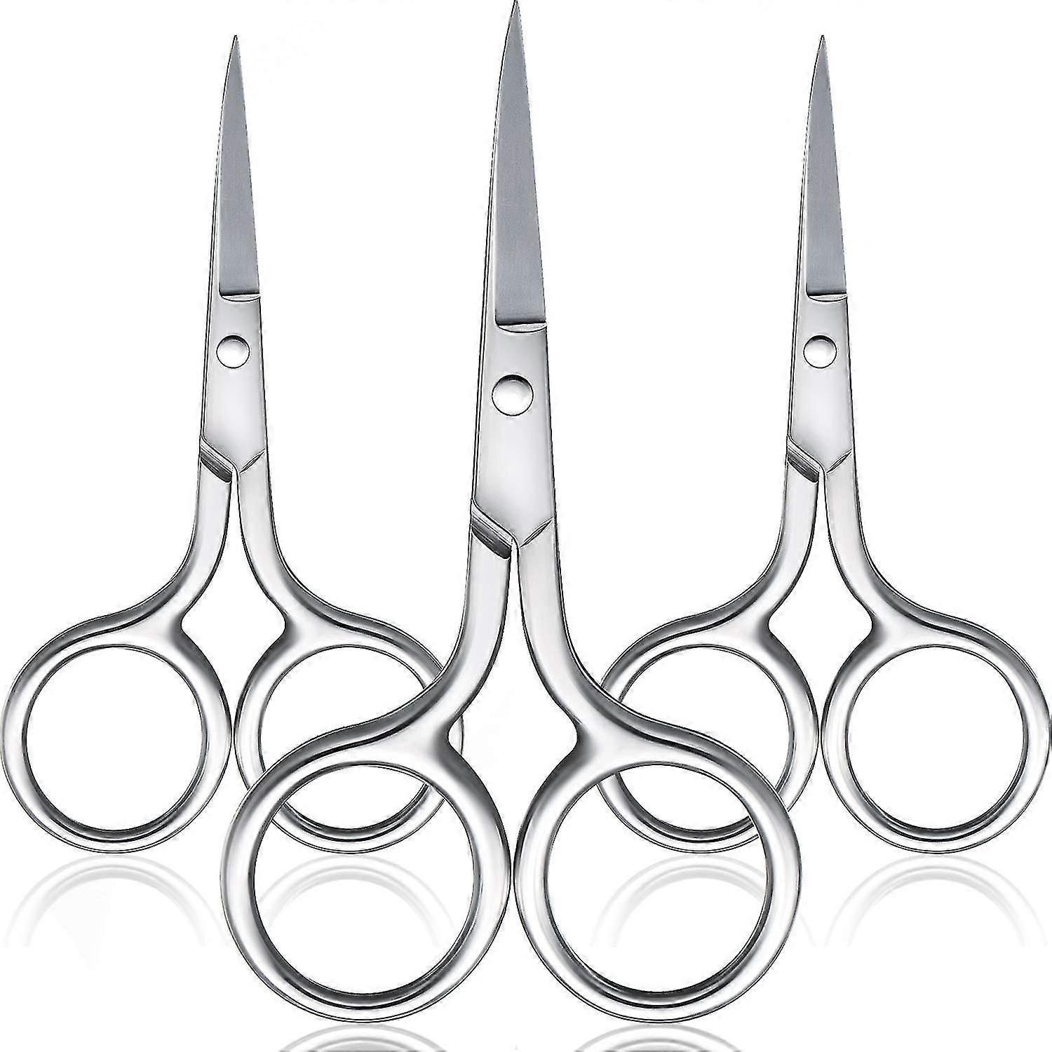 3 Pack Nose Hair Scissors - Stainless Steel Facial Hair Scissors For Eyebrows, Nose, Moustache, Beard