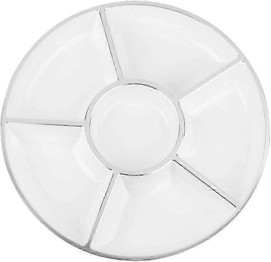 3 Pack White Silver Rim 12 Inch Serving Tray Appetizer Platter