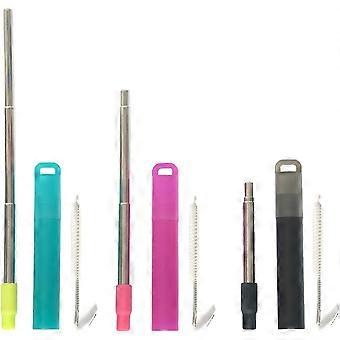 3 Pack Metal Reusable Straws with Silicone Tip & Carrying Case & Cleaning Brush, Compact Portable Stainless Steel Drinking Straws with Telescopic Desi