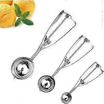 3 عبوات من مغارف الآيس كريم مع إطلاق الزناد ، آيس كريم معدني مقاوم للصدأ