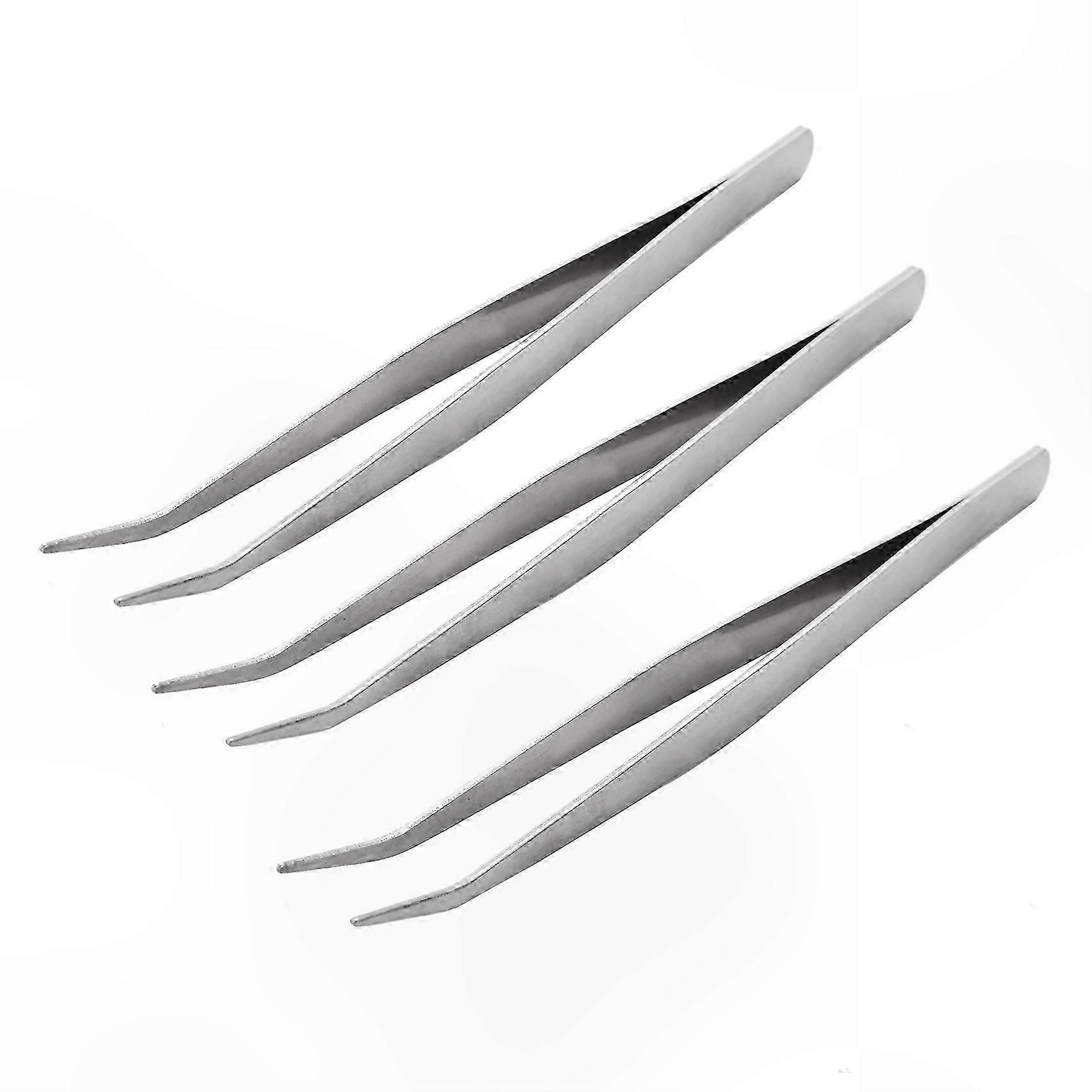 3-Pack 5.9" Silver Bent Tip Tweezers Curved Forceps Precision Hand Tool for Crafting and Detail Work