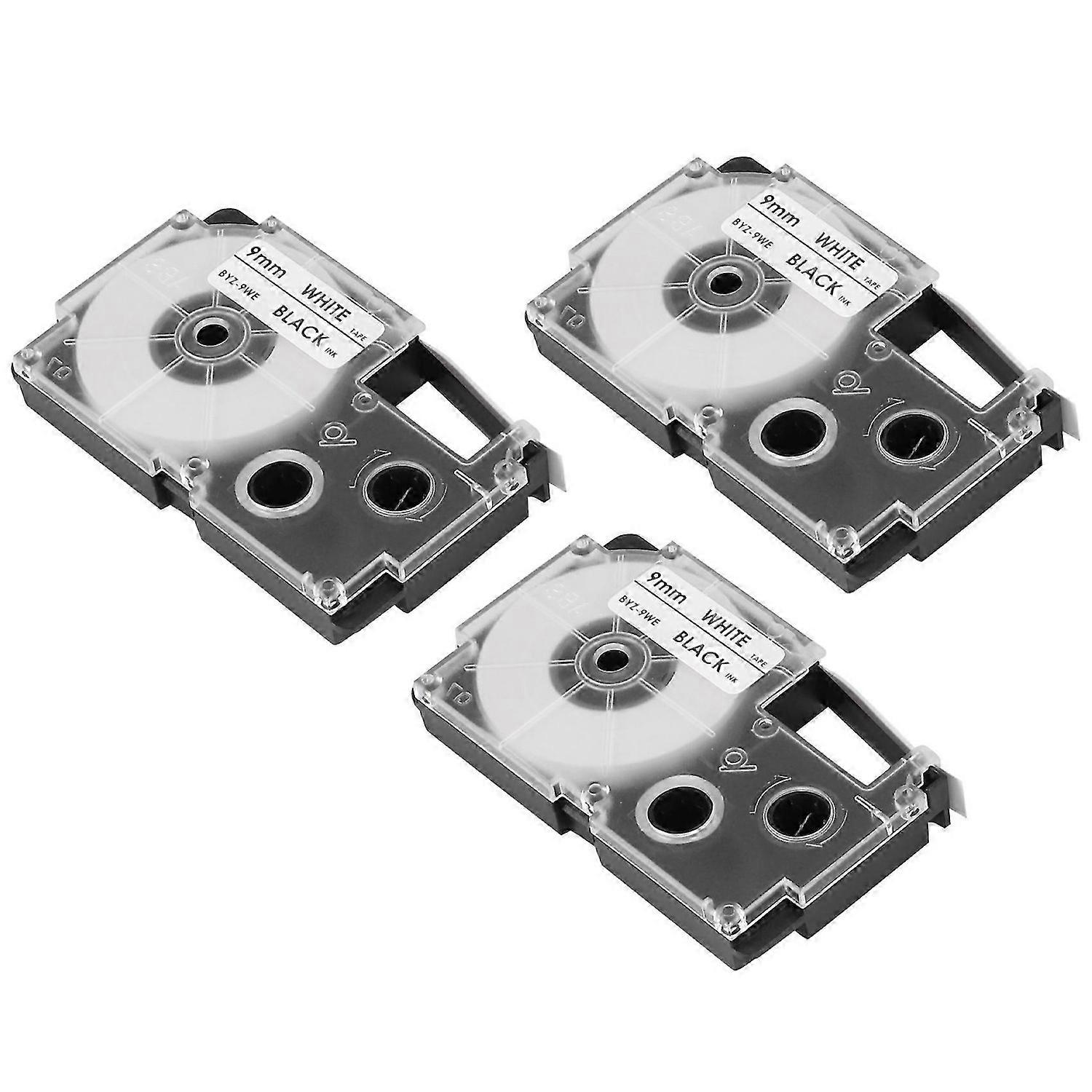3 Pack 9mm Black on White Label Tape Label Maker Compatible with KL-120, KL-60, KL-100, KL750B, KL75