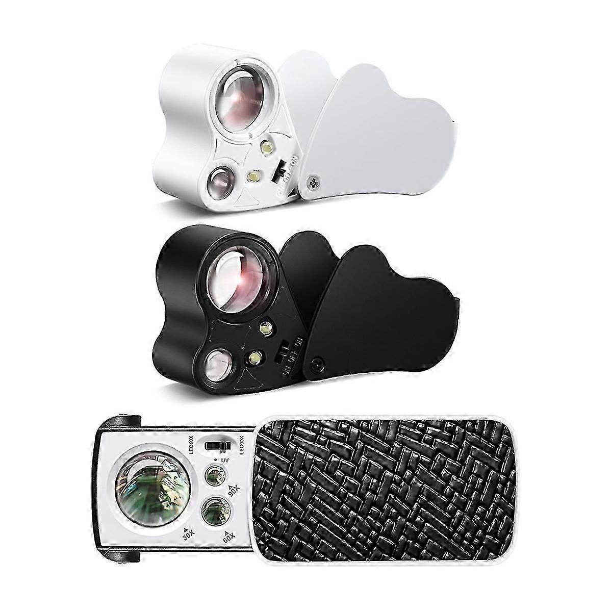 3-Pack LED Illuminated Jewelers Loupe with UV Light - 30X 60X 90X Magnifier for Gemstones & Jewelry