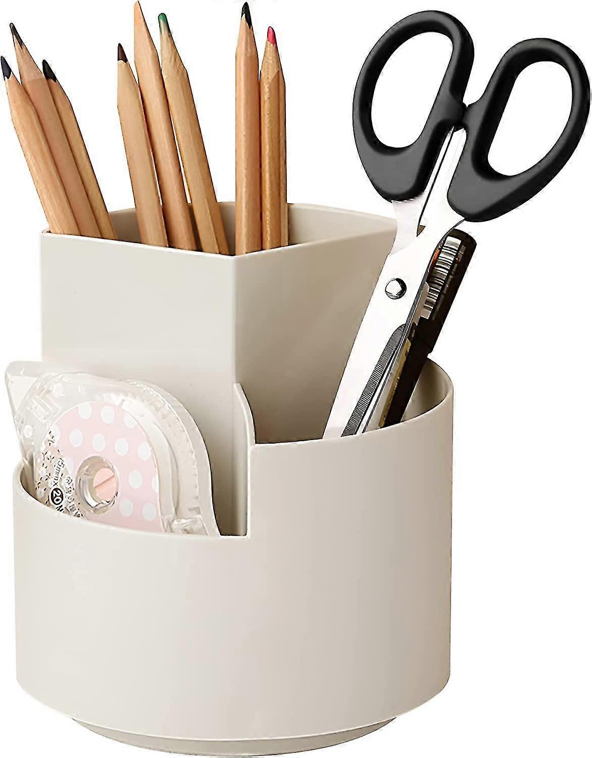 3 In 1 Creative Rotating Pen Holder, Makeup Brush Holder Beige, Pencil Pot Effective For Desk, Table, Stationery, Home
