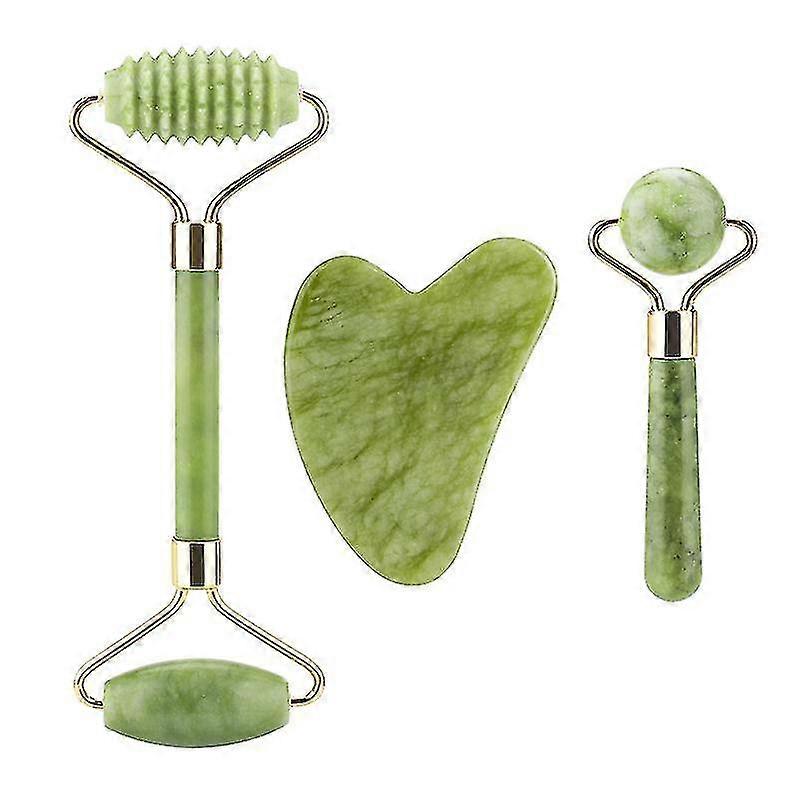 3 In 1 Facial Massage Roller Guasha Board Kit Double Heads Jade Stone