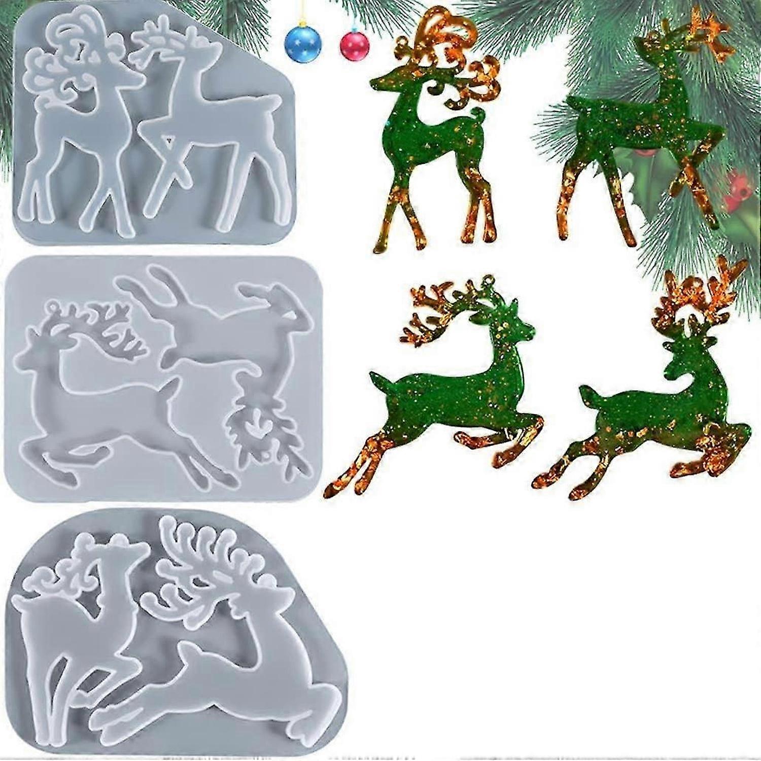 3Pcs Resin Christmas Elk Molds, Christmas Ornament Resin Molds Deer Silicone Mold for Resin Epoxy Casting, DIY Xmas Hanging Ornament