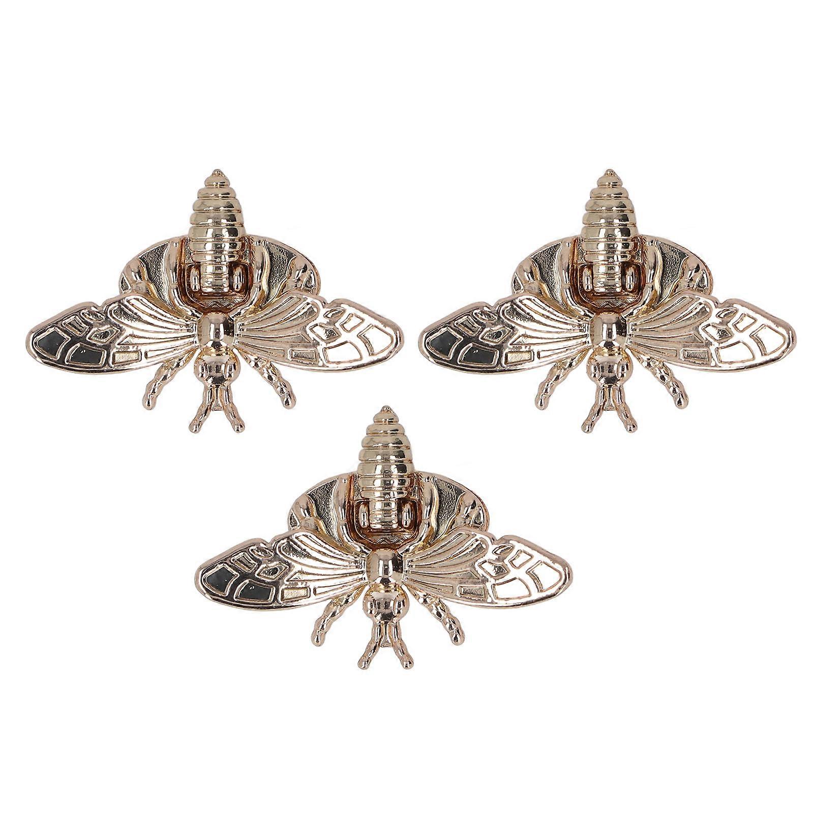 3pcs Clasp Turn Lock Light Gold Bee Shape Alloy Material Rotatable Design DIY Decorative Bag Making Supplies