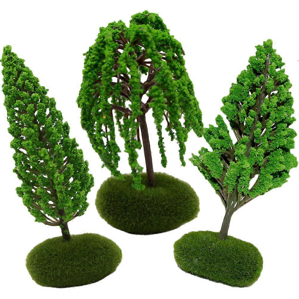 3pcs Green Miniature Street Trees for Decoration Plastic Artificial Model Landscape Decor