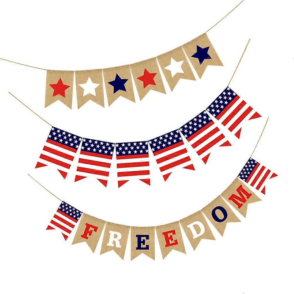 3pcs Independence Day Banner Flags for National Holiday Party Decor, July 4th Mantel Courtyard Decoration Atmosphere