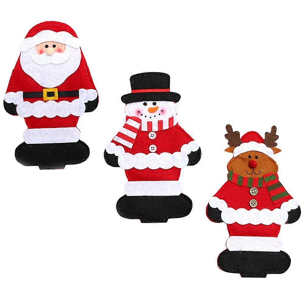 3pcs Christmas Cutlery Bags, Xmas Tableware Pouches, Festive Snowman, Elk & Santa Silverware Holders for Holiday Use