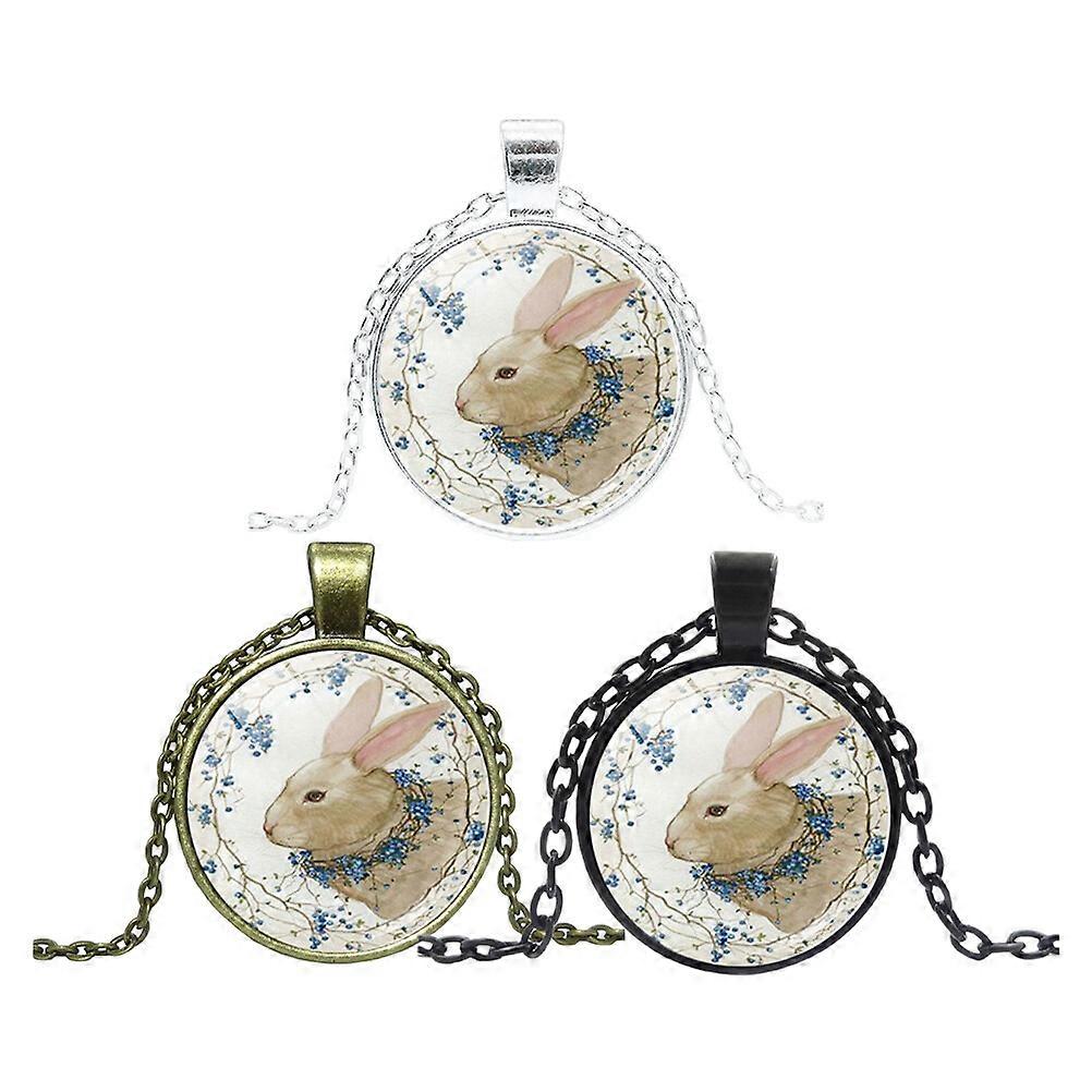 3pcs Stylish Precious Stone Necklace Easter Bunny Necklace Pendant Necklace