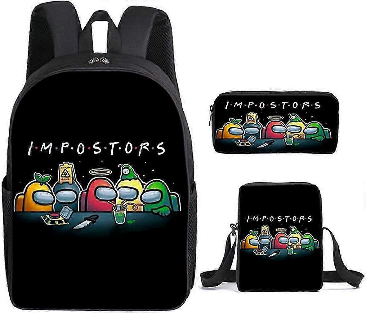 3Pcs Among Us Game Themed Backpack Set with Lunch Bag & Pencil Case for Boys Girls Teens School Students and Fans - Kids Bookbag Gift Idea