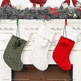 3 Pcs Christmas Stockings,cable Knit Christmas Stockings With Poms Christmas Holiday Hanging Stocking Decorations
