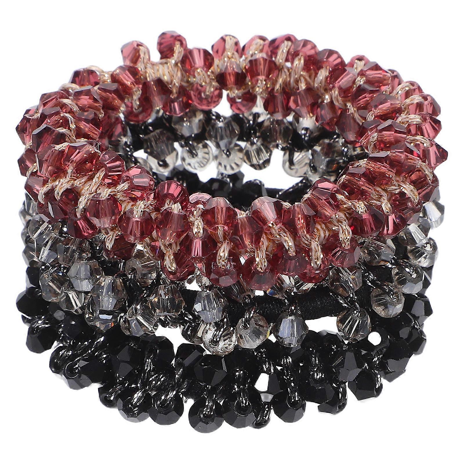 3pcs Rhinestone Hair Ties Soft Stretchable Sparkly Scrunchies for Women Comfortable Ponytail Holders for Weddings, Parties & Daily Wear Hair