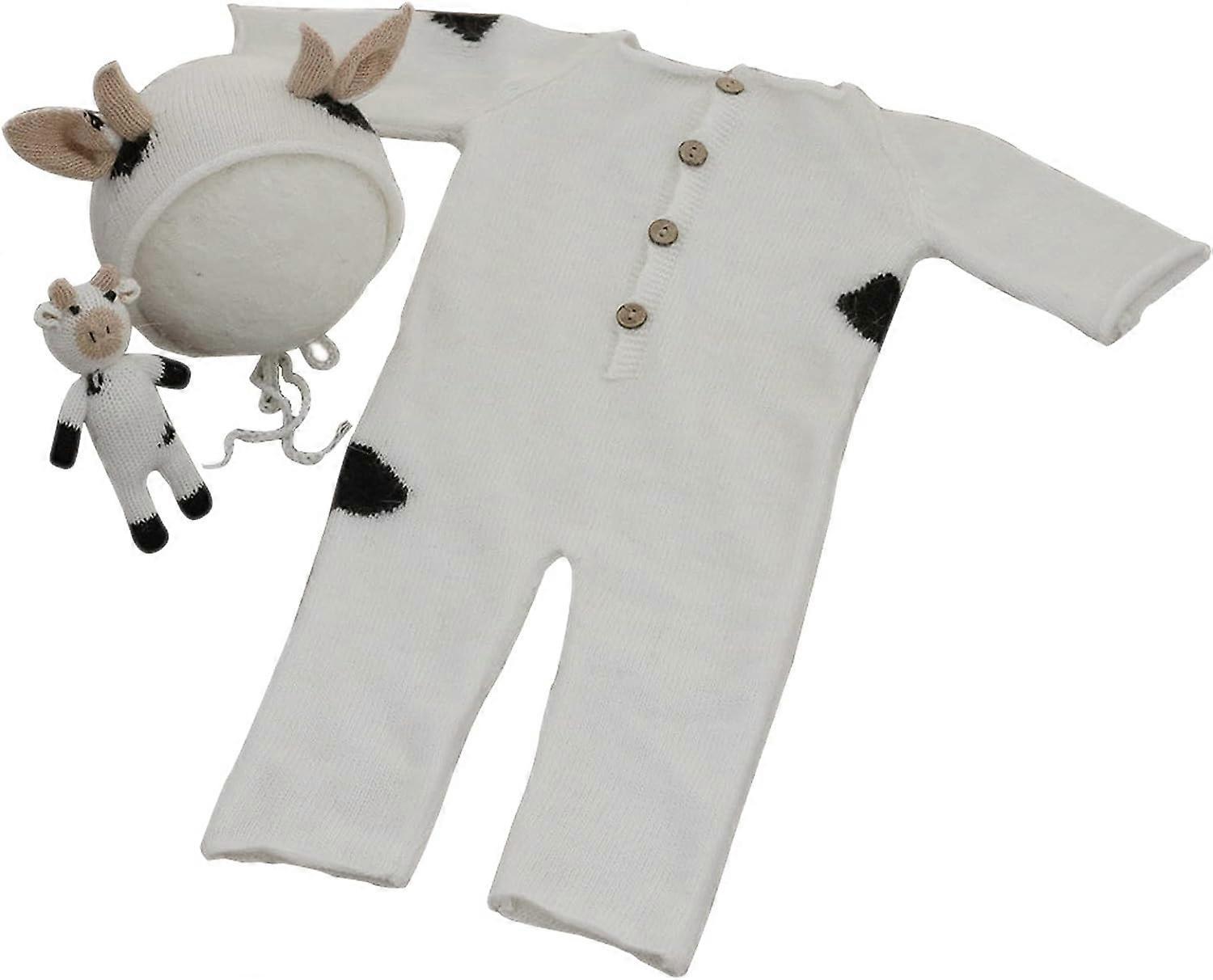 3PCS Newborn Photography Props Knitted Mohair Jumpsuit Hat Calf Set Baby Boy Girl Photo Props Outfits for 0-1 Month Baby