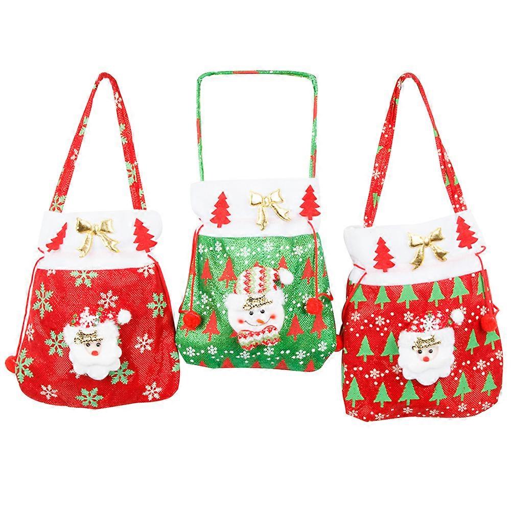 3pcs Christmas Bags with Comfortable Handles, Durable Santa Claus Candy Pouches, Mixed Colors, Lovely Holiday Souvenir Holders for Parties and Family