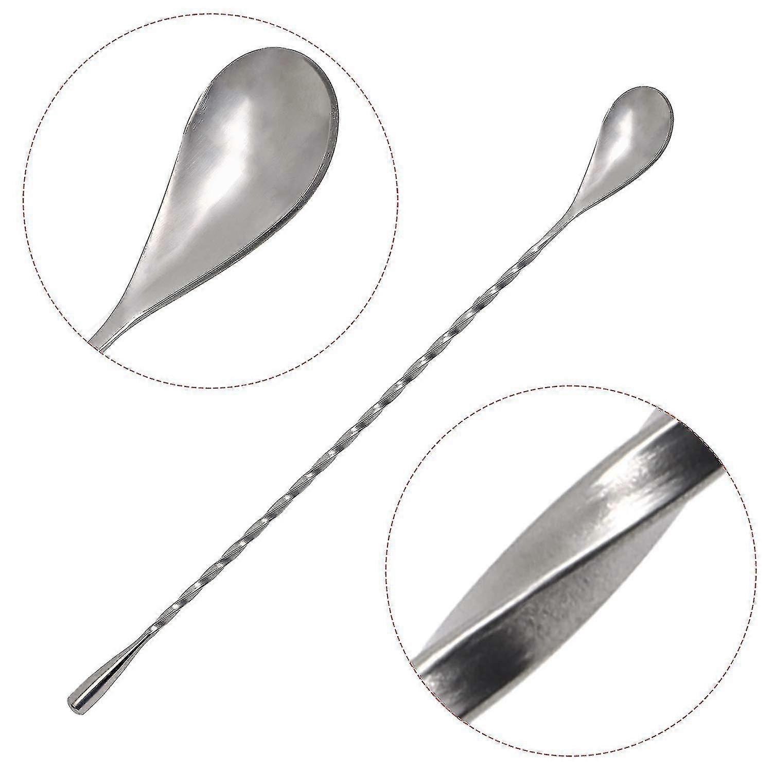 3 Pcs Swizzle Sticks Silver Stainless Steel 11.8 Inch Long Handle Cocktail Spoons Spiral Stir Sticks Coffee Stirrers