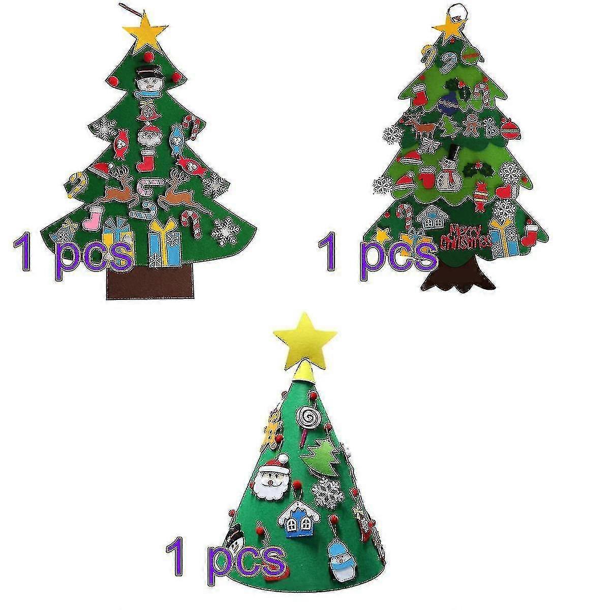 3 Pcs Felt Christmas Tree For Toddlers Wall Window Diy Ornaments