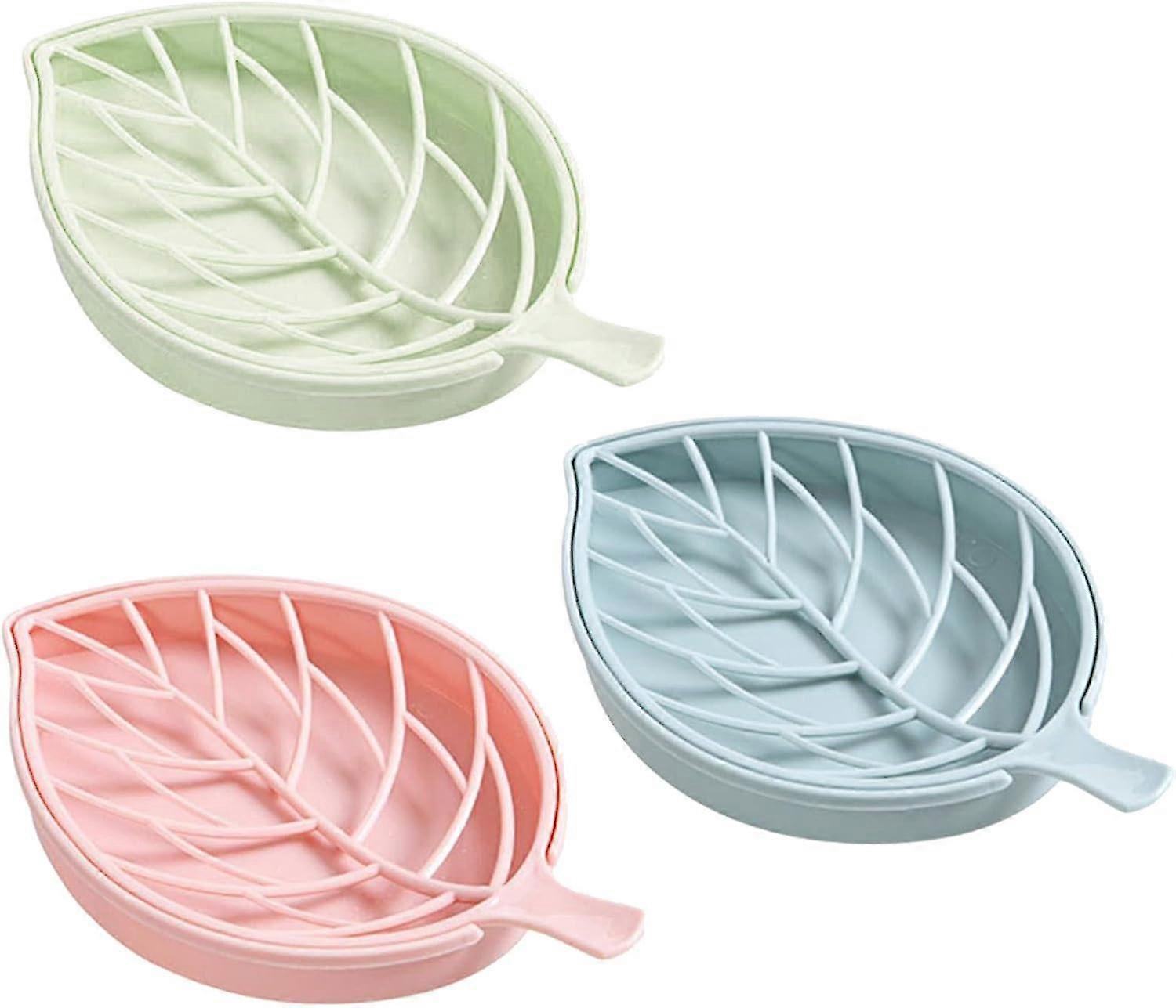 3pcs Soap Dish Leaf Shaped Soap Holder Plastic Soap Case Keep Soap Bars Dry Leakproof Double-layer Soap Container For Shower Bathroom Kitchen