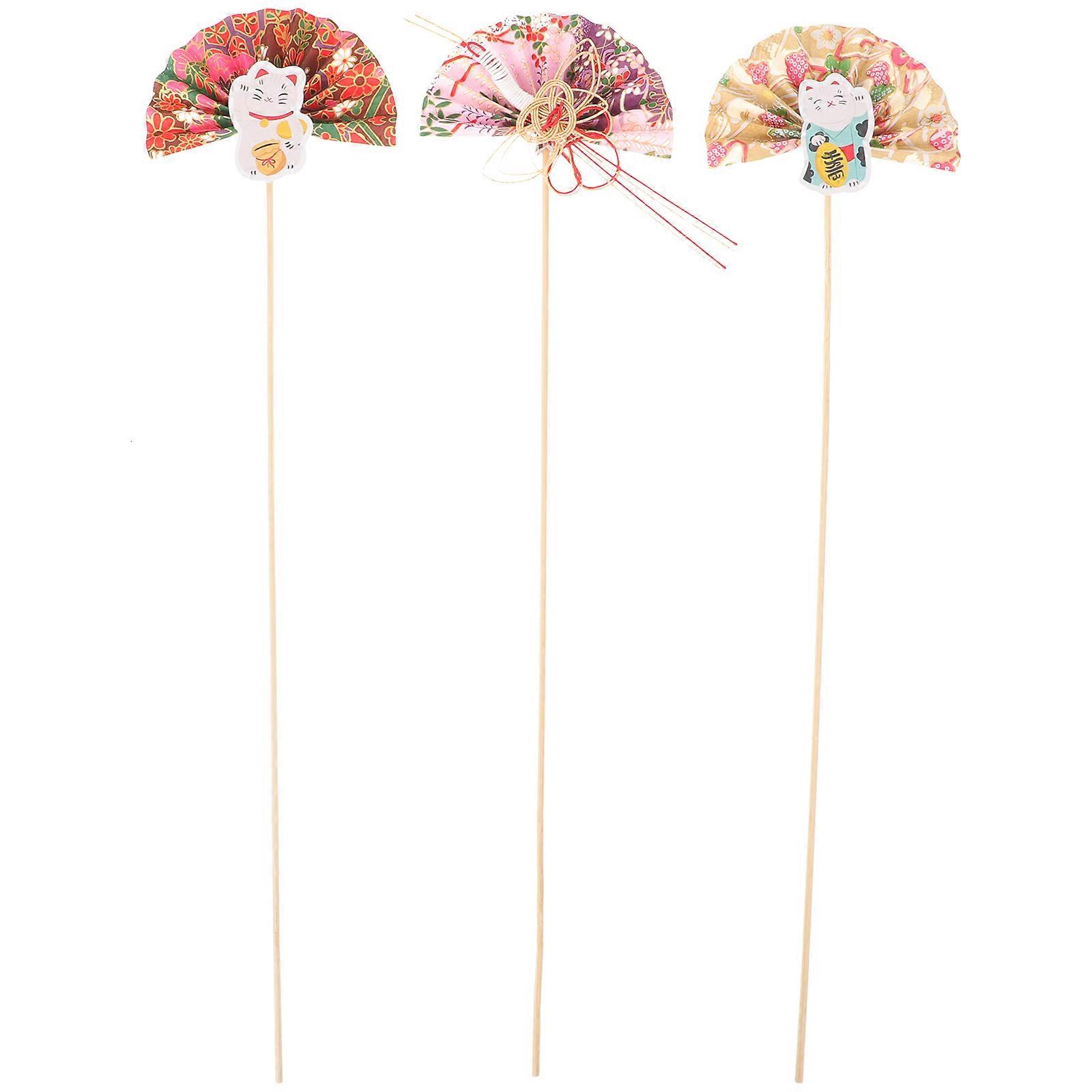 3pcs Japanese Style Fan Shaped Flower Arrangement Sticks Decorative Party Photo Props for Restaurant and Outdoor Holiday Decor
