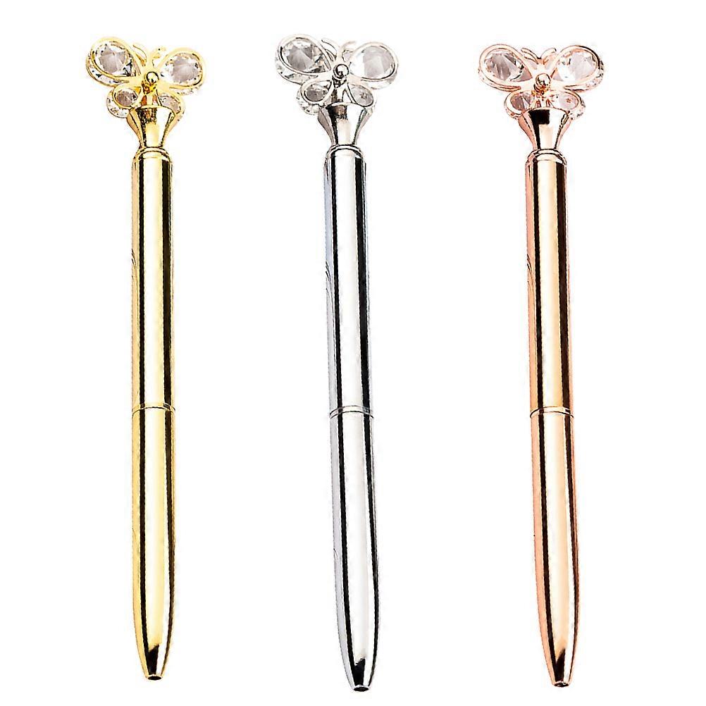 3pcs Ball-point Pen Metal Crystal Ballpoint Pens Stationery for Home School Office (Rose Gold, Golden, Silver, 3pcs/Pack)