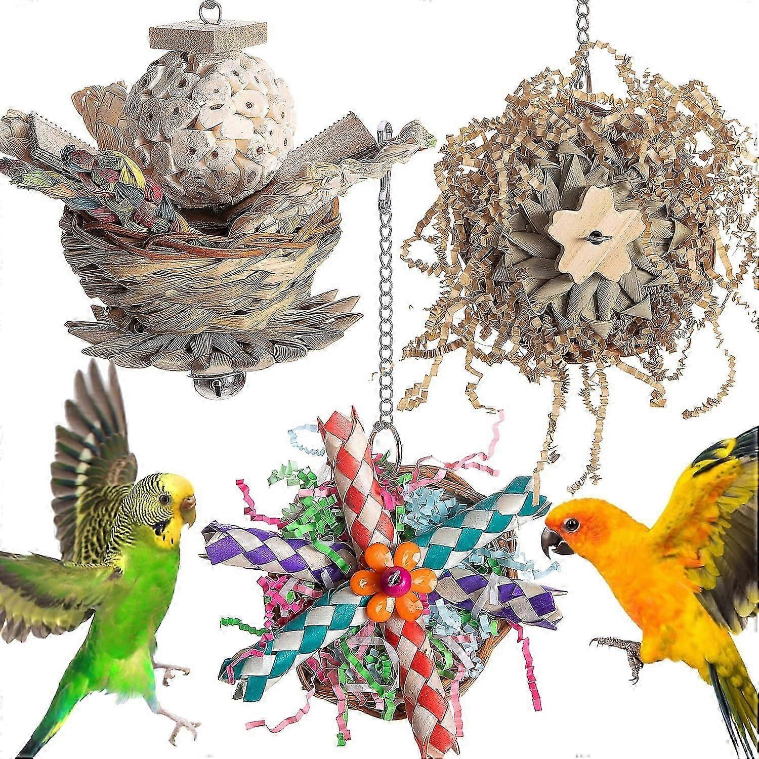 3Pcs Bird Toy Tearing Cluster Parrot Foraging Chewing Toy Shredding Paper for Teeth Blocks Grass Cage Hanging Toy Pet Grinding Teeth Toy