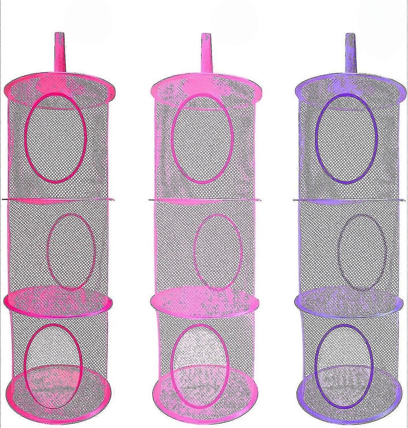 3 Pieces Toy Storage Hanging Mesh Basket Cabinet, Soft Teddy Hammock Foldable Mesh 3-tier Space Saving Storage Organizer Box Children's Day Gift Cute