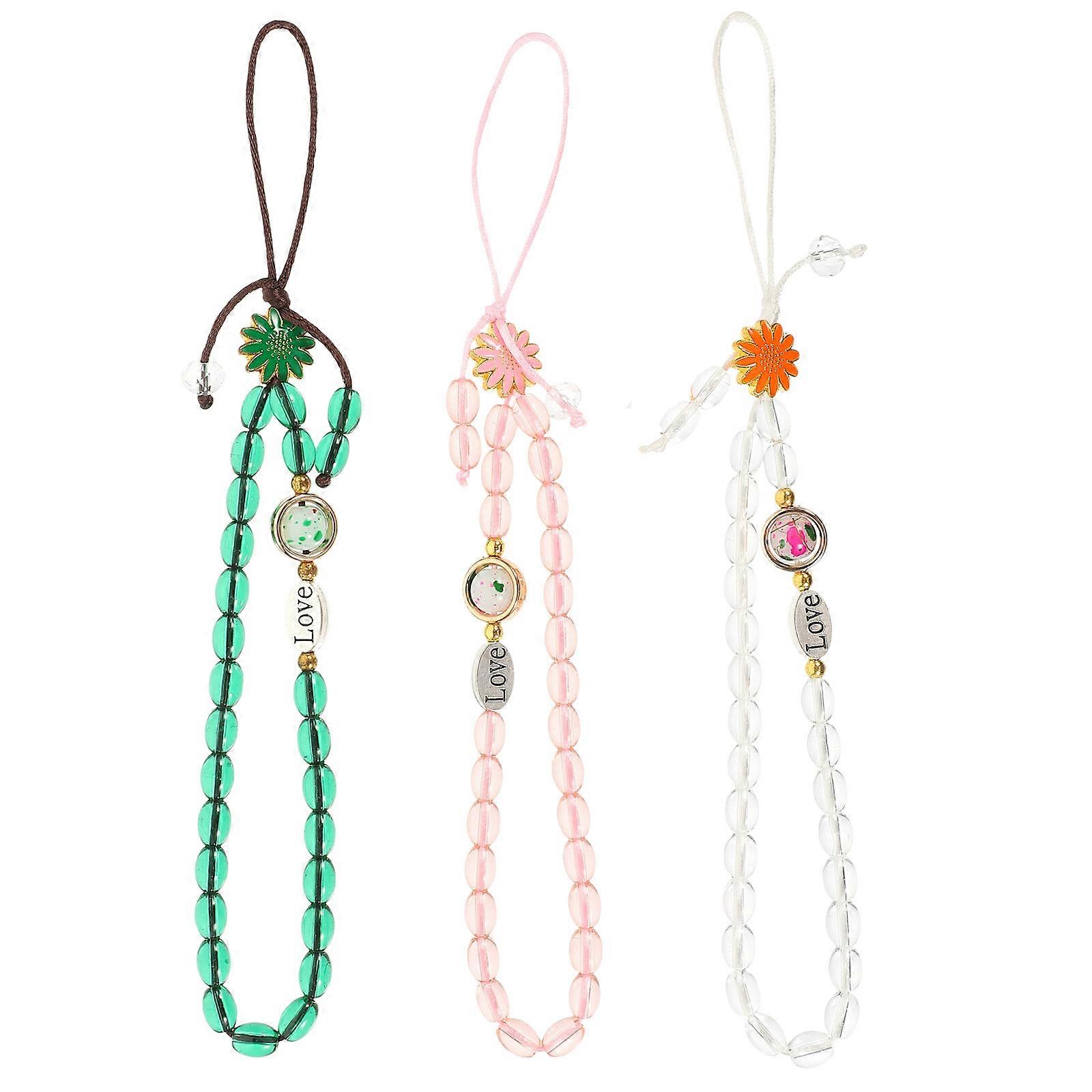 3pcs Pearl Beaded Phone Charms Cell Phone Wrist Straps Daisy Beaded Phone Lanyard