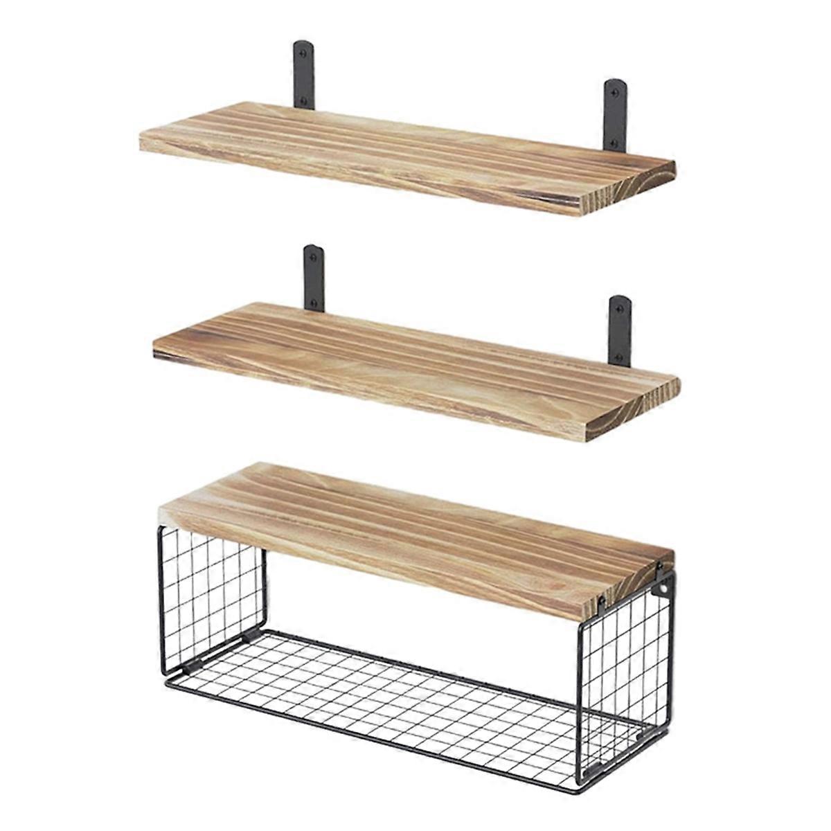3Pcs/Set Wall-Mounted Storage Rack Iron Wire Basket Wooden Rack Kitchen Spice Potted Plants Shelf