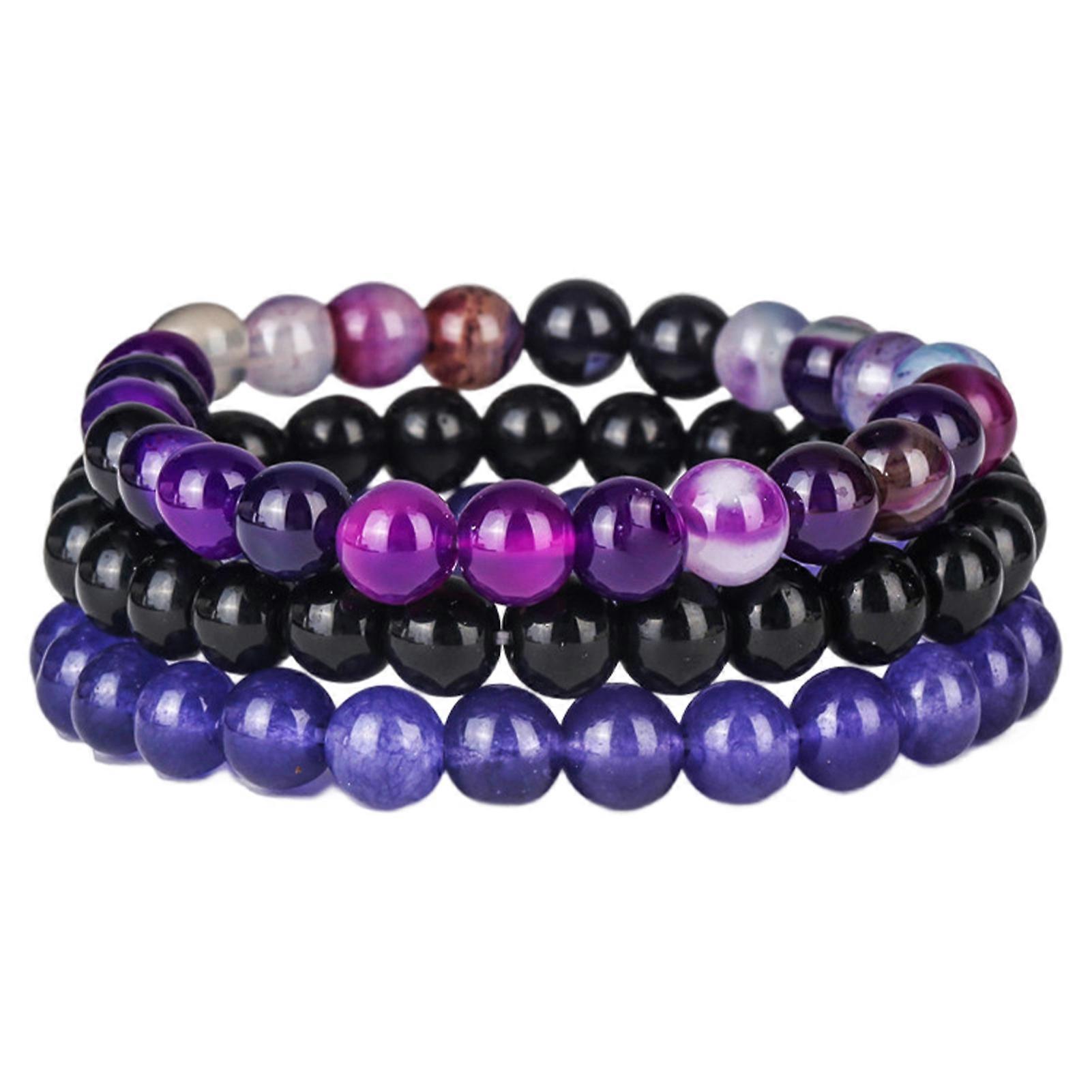 3Pcs/Set Stone Bracelet Three-In-One Charming Elastic Rope Natural Blue Gold Tiger Eye Agate Stone Bracelet for Women