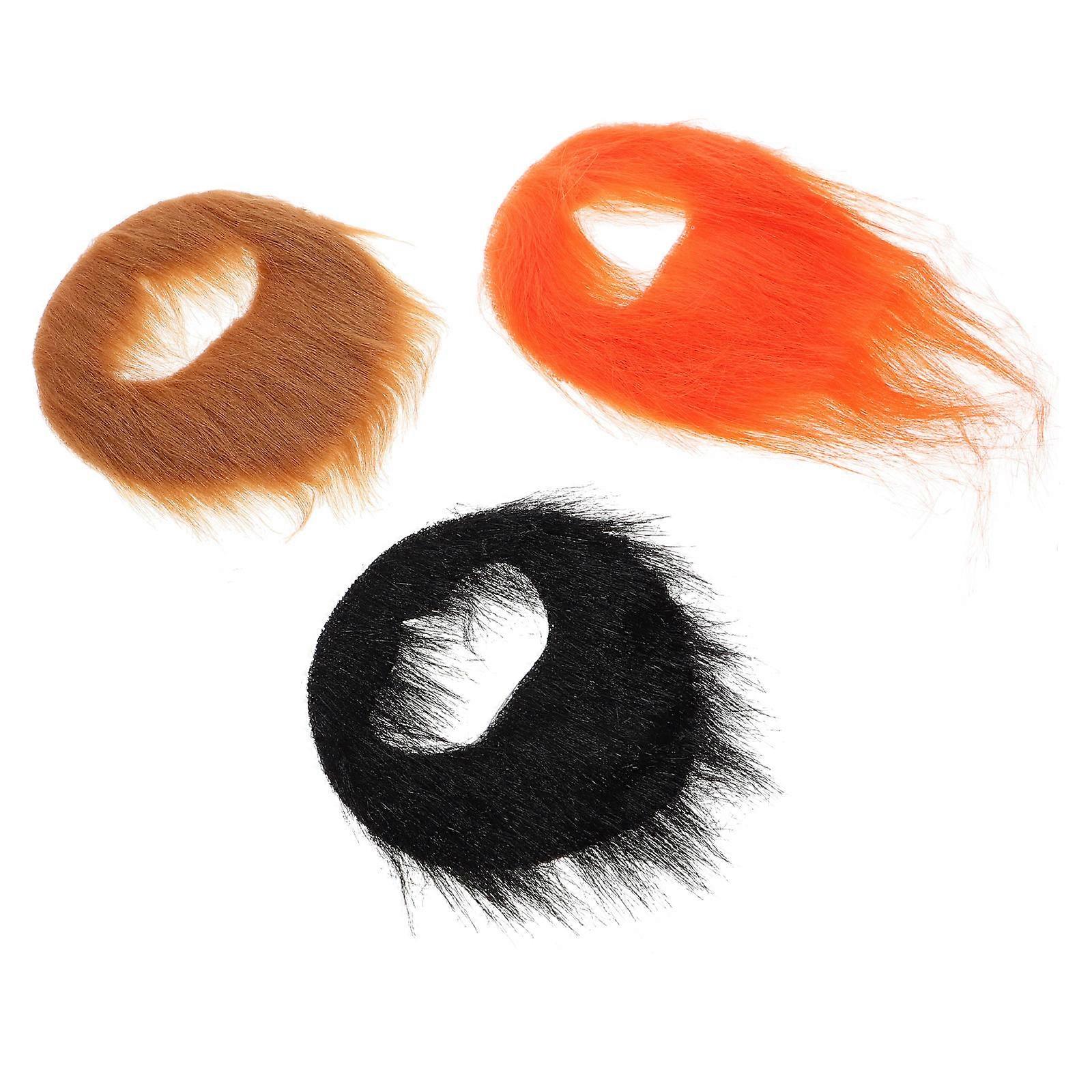 3Pcs Fake Mustache Set Realistic Design For Halloween Party Assorted Adhesive Polyester Facial Hair Simulation