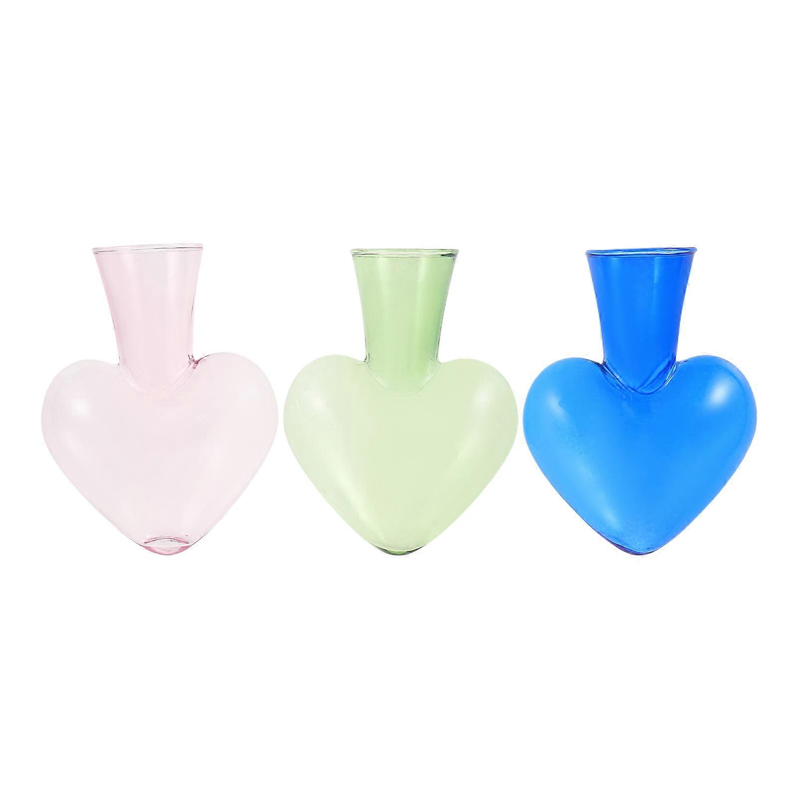 3 Pieces Heart Shaped Glass Vase for Home Decor Creative Crafts Assorted Color Hydroponic Planter