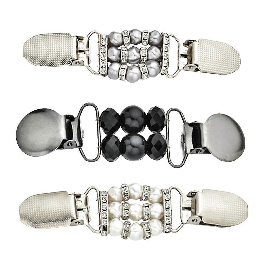 3 Pcs Vintage Beaded Sweater Clips with Pearl Accent, Alloy and Acrylic Cardigan Brooches for Women's Scarves, Dresses, and Shawls Elegant Clasps