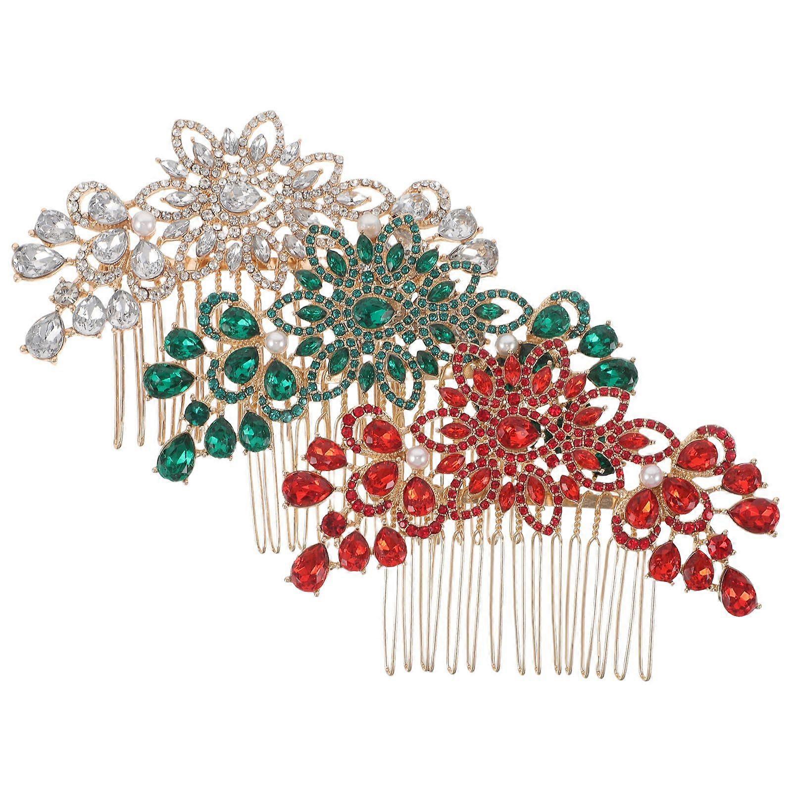 3pcs Wedding Hair Comb: Elegant Flower Rhinestones Hair Comb For Women - Rhinestone Decorative Headpiece For Wedding Bridal Party