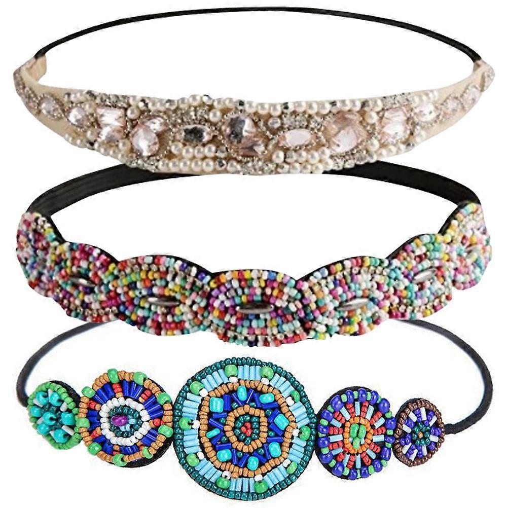 3pcs Beaded Elastic Rhinestone Headbands for Women – Stylish Hair Accessories for Parties, Festivals & Everyday Wear – Comfortable Fit for All Head