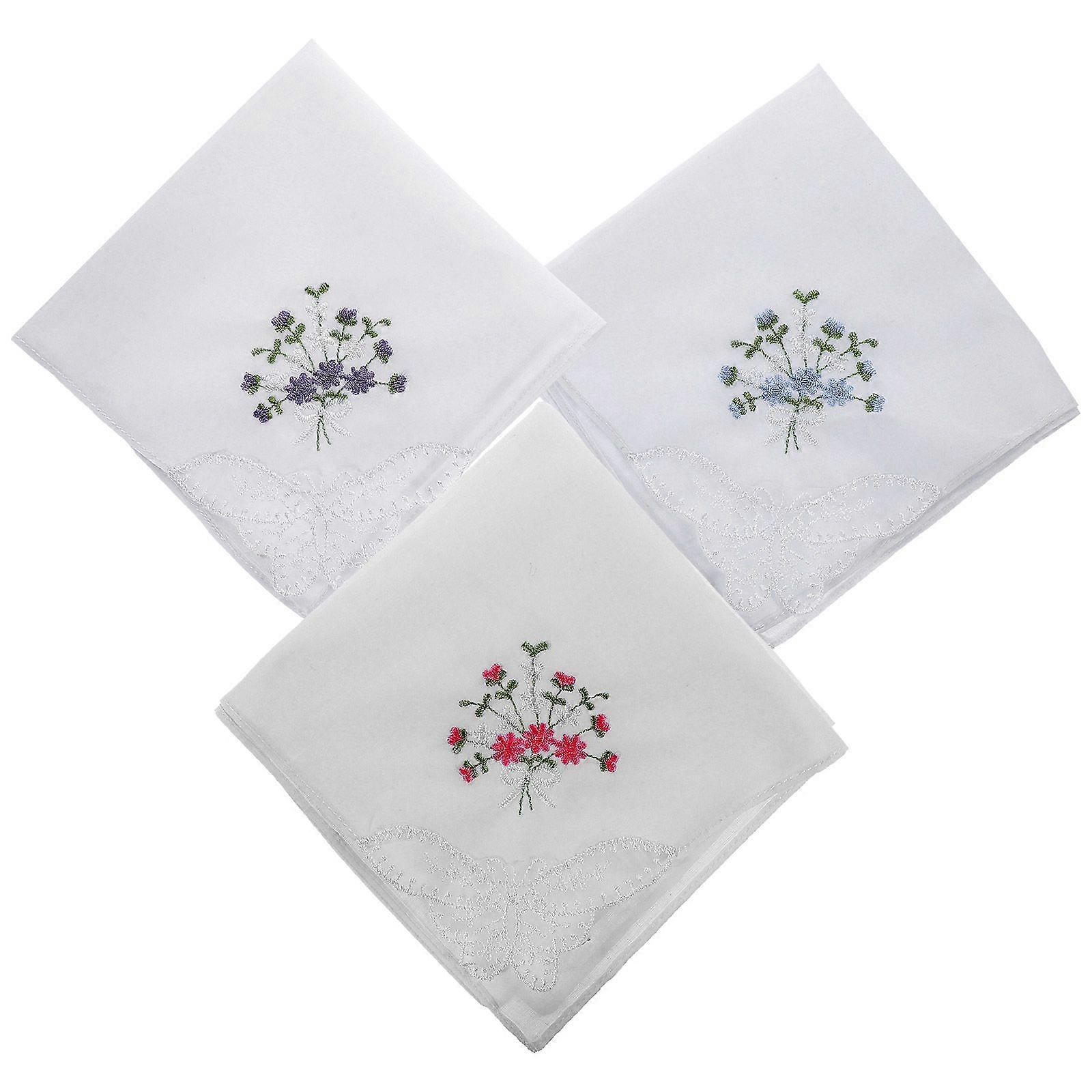3pcs Cotton Handkerchief Lace Handkerchief Flower Embroidery Pattern Handkerchief