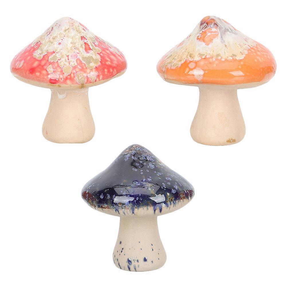 3pcs Ceramic Mushroom Figurines Mini Garden Decorations for Home Office Vivid Colors, Compact Design, DIY Miniature Landscape Ornaments