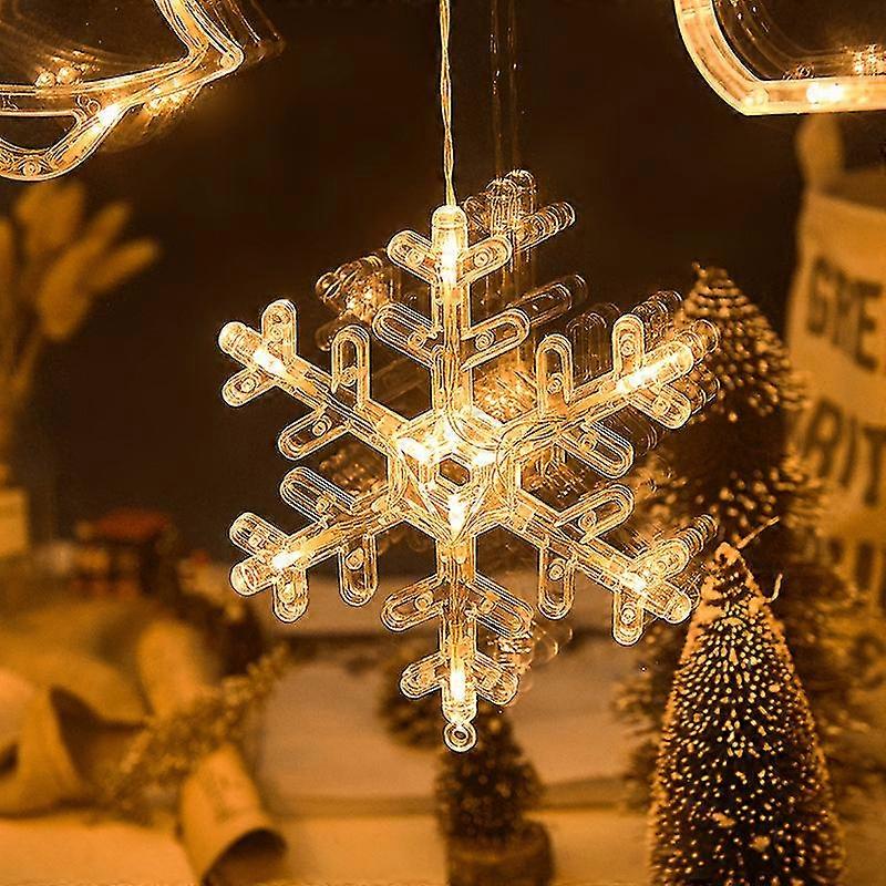 3pcs Window Decorations Hanging Led Light Warm White Battery Powered With Suction Cup Snowflake Bell Deer Decor