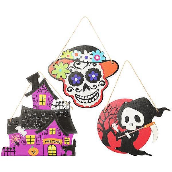 3pcs Halloween Wood Hanging Ornaments Halloween Tree Decoration Halloween Decorations