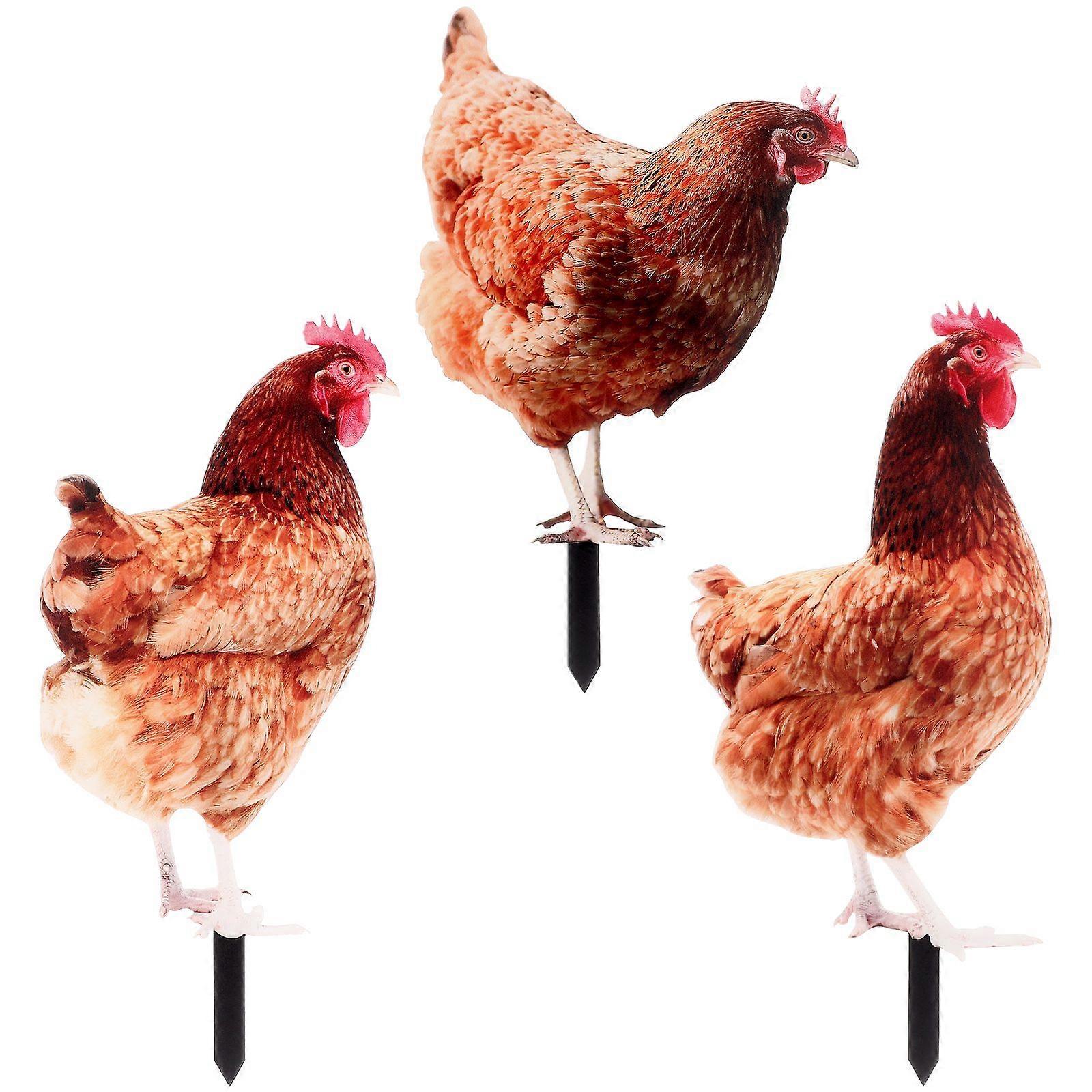 3pcs Realistic Chicken Statues Stakes Acrylic Printing Outdoor Stakes Garden Hen Sculptures Stakes