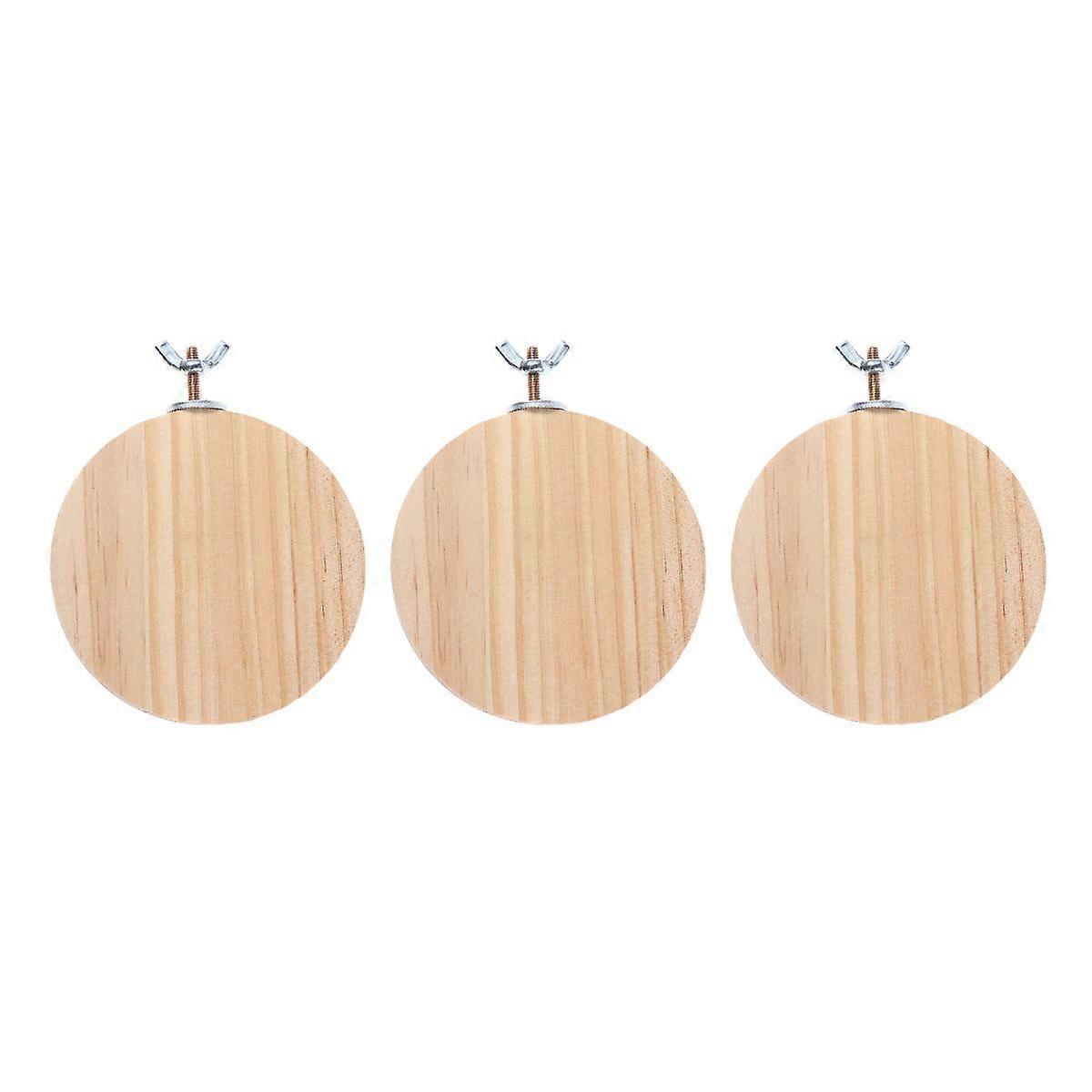 3Pcs 88mm Durable Round Shaped Pedal Wooden Board Cage Nest Accessory Springboard Chinchilla Toy