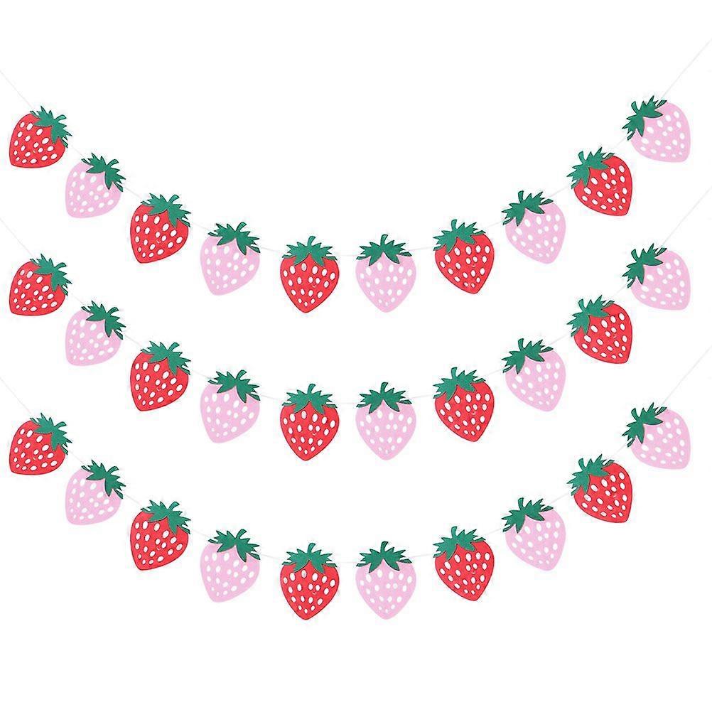 3 Sets of Strawberry Theme Banner Garland Party Strawberry Hanging Flag Birthday Party Banner Decors
