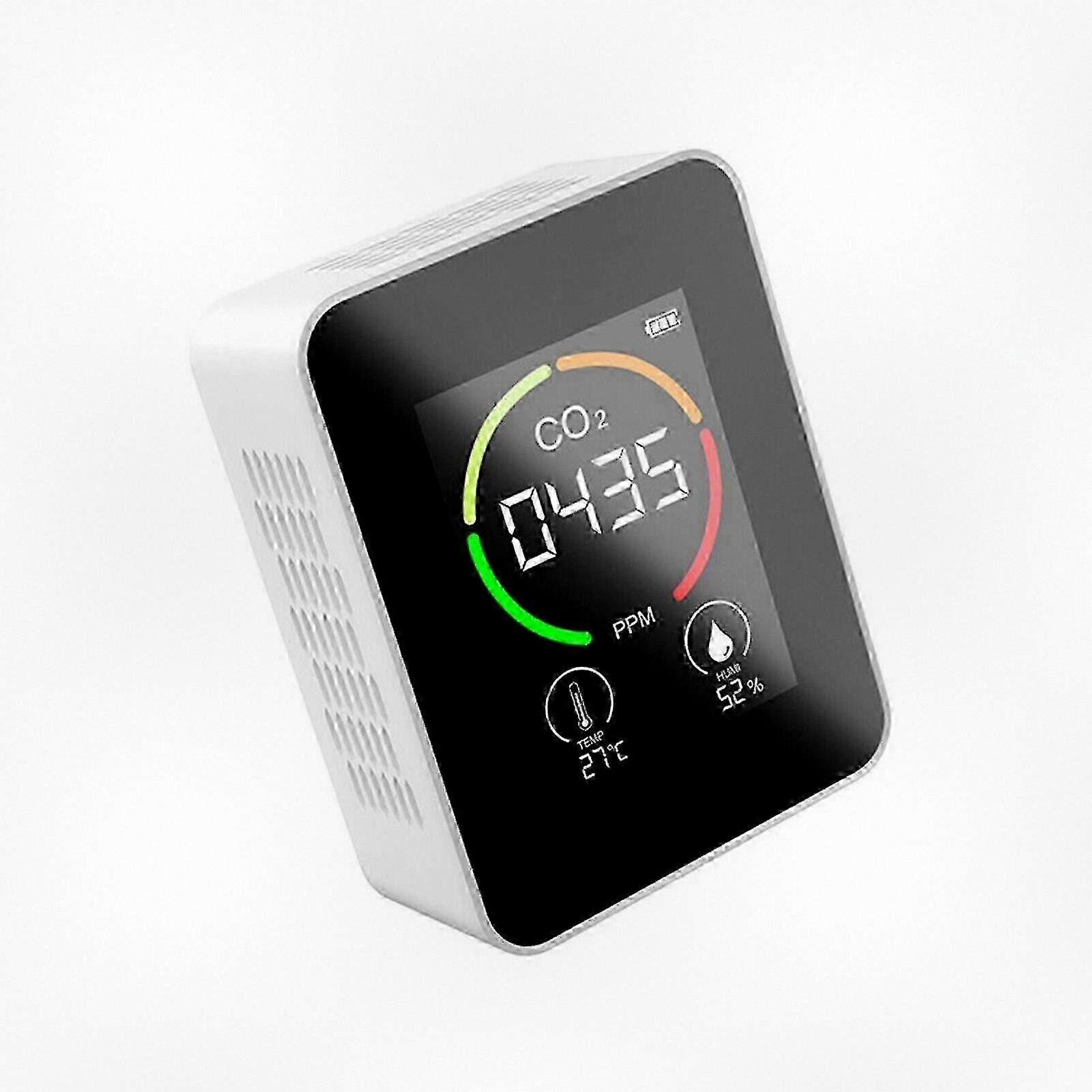 SpecificationsnewColourBlack,WhiteoptionalSizeapprox.907030mm3.542.751.18inchScreen2.8inchScreentypeLCDCO2detectionrange4005000PPMSensitivityofcarbondioxidedetection1PPMTemperaturemeasurementrange050degreesAccuracyoftemperaturemeasurement1degreeHumiditymeasurementrange099RHInaccuracyofhumiditymeasurementChargingmodesTYPEC2VBatteryBuiltinlithiumbattery1200mAhFeatures3in1Canactasacarbondioxideconcentrationdetector,thermometer,andhygrometersimultaneously.Builtin1200mAhlithiumbattery,useTYPECchargingcabletochargeit.ColourscreendisplayscurrentCO2data,temperature,andhumidity.Thecoloredringchangesdependingonthecarbondioxidelevel.PressandholdtheOnOffbuttonforthreesecondstoswitchonandoff.Itautomaticallydetectscarbondioxide.Fineworkmanshipandstableperformance.Moreaccurateandreliable.Easytooperate.Longservicelife.Scopeofdelivery1pcxcarbondioxidedetector1pcxdatacable1pcxmanual