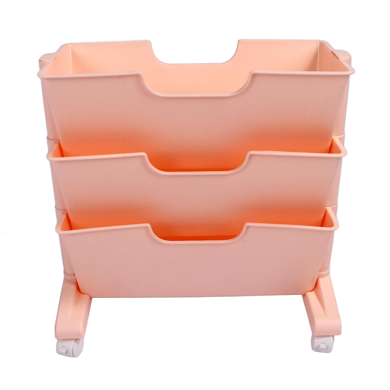 3 Tier Movable Bookshelf Removable Bookcase Plastic Rotatable Mobile Bookshelf for Bedroom Dormitory Pink