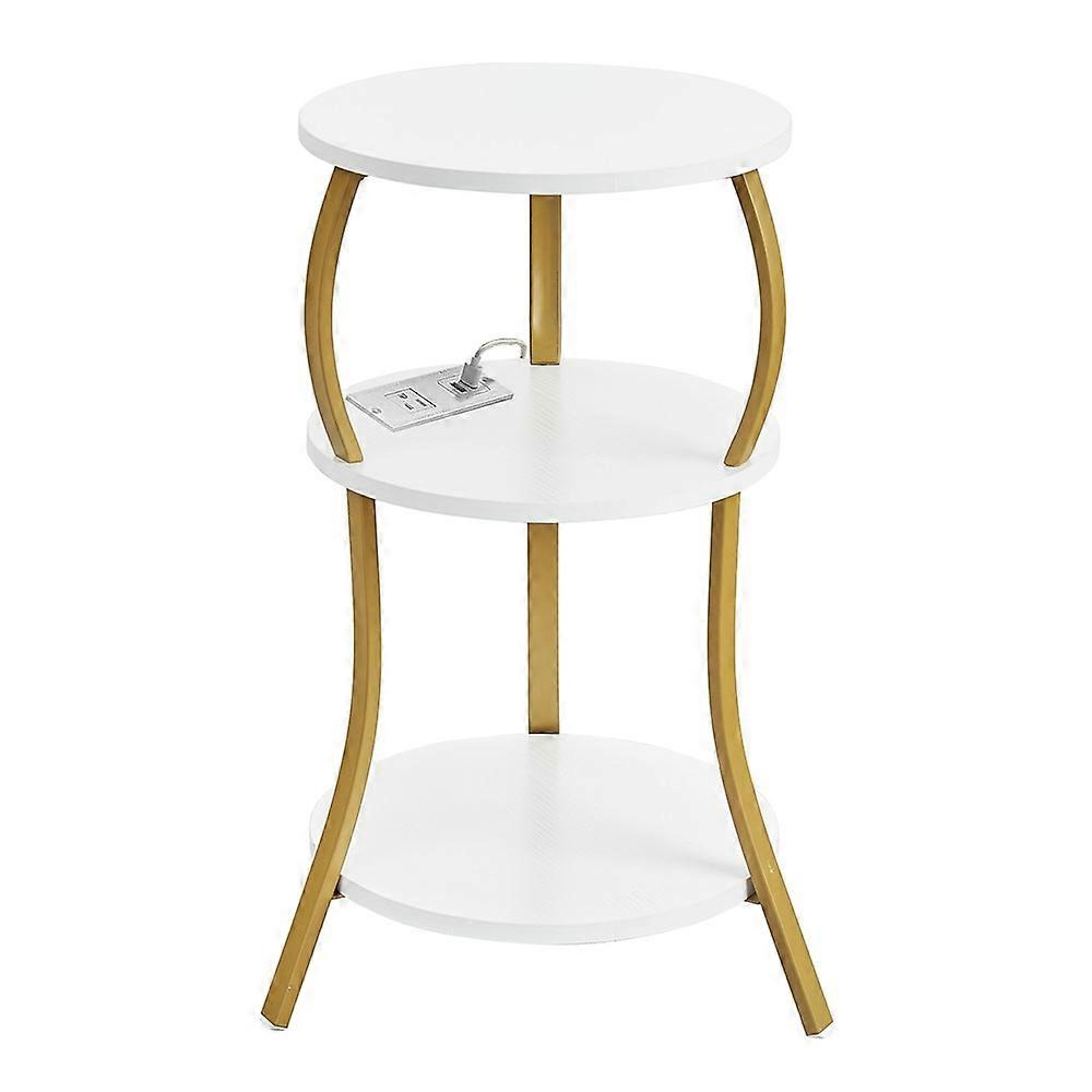 3 Tier Round Side Table with Power Outlet Slim Waist Design Tripod Base