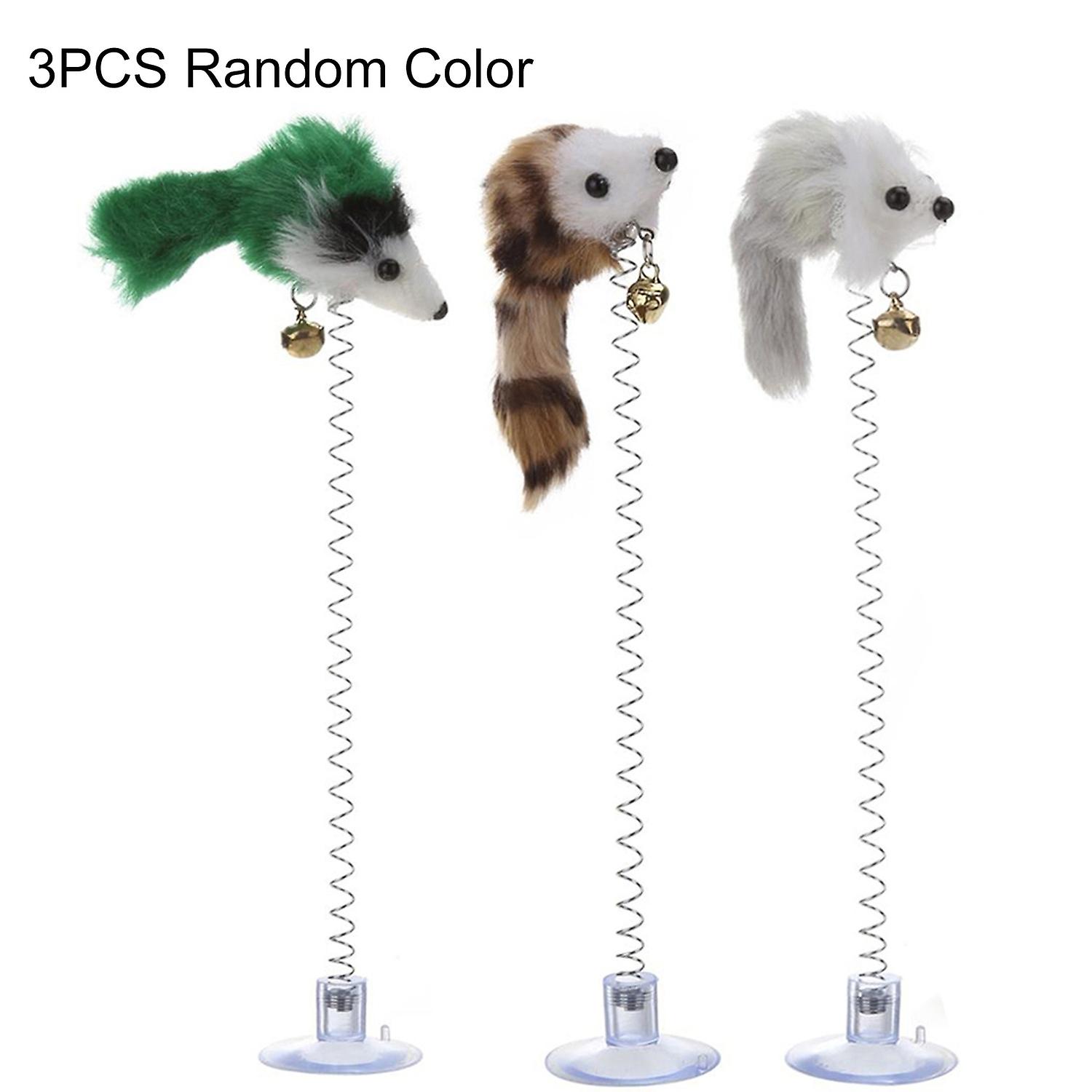 3 x 3Pcs Pet Cats Kitten Funny Spring Suction Cup Feather Mouse Elastic Scratch Toys