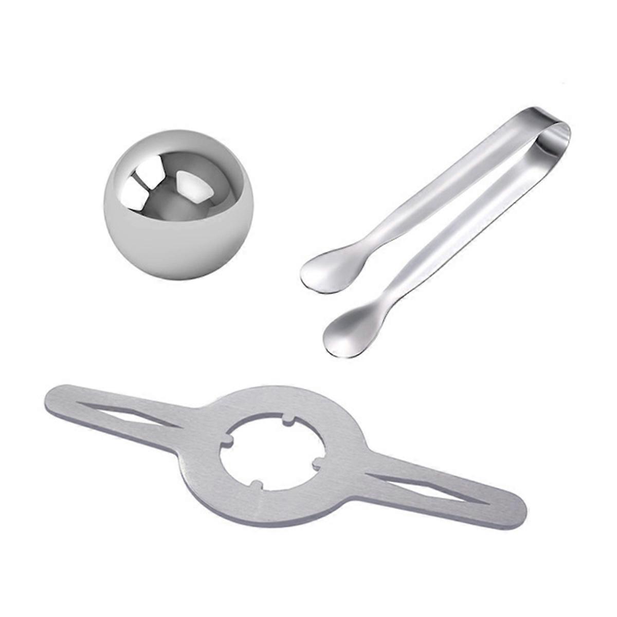 Introducing our Stainless Steel Ice Ball Set, the perfect solution for those who enjoy the finer things in life, like perfectly chilled drinks or rich, aromatic espresso. This innovative product was designed to create ice balls that are not only visually stunning, but also practical. The high-quality stainless steel construction guarantees durability and , making it a worthy addition to your kitchen gadgetry. This set is easy to use; this stainless steel ice ball set is ideal for espresso lovers as it helps to extract and preserve the rich flavor of the coffee while cooling it quickly. Whether you're hosting a or enjoying a quiet evening , this ice ball making set is a must-have for anyone who values quality and style in their drink making. Say goodbye to traditional and enjoy a new way of enjoying your favorite beverages with our Stainless Steel Ice Ball Set. Colour:Silver Material:Stainless steel Specification:3Pcs Package Contents: 1 x ice hockey 1 x bracket 1 x ice clip Only the above package content, other products are not included. Note: Light reflection and different displays may cause the color of the item in the picture a little different from the real thing. The measurement allowed error is +/- 1-3cm.