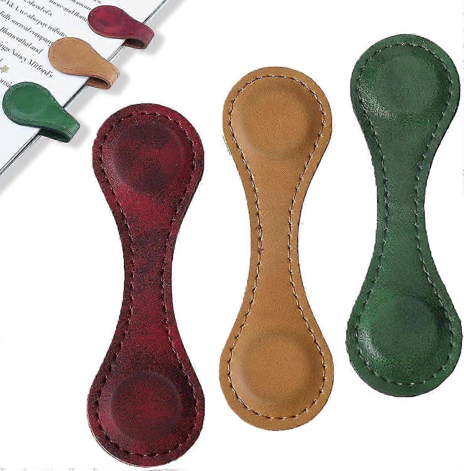 3Pcs Leather Magnetic Bookmarks, Double-Sided Magnetic Book Mark Clip Book Accessories