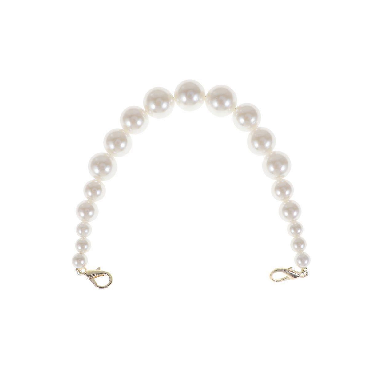 Description Your now hand clutch can be converted to a daily or occasional shoulder cross-body bag/purse using this replacement attachable pearl chain strap. Maximize the use of your wrist let wallet by using it as a cross body bag or shoulder bag with this removable link strap. This is often used to replace your original stiff non-flexible leather or synthetic strap. This decorative chain can be easily attached and removed from both external rings on each side of the purse. Features - Color: White. - Material: Plastic. - Size: 30 x 2 x 2 cm. - Classic replacement pearl strap for DIY bag, such as handbags, clutches etc. - Metal buckles attached ensure the sturdy installation. - Perfect replacement handbag handle accessory for your purse or handbag. - Great for DIY handmade accessory. Easy to install, removable, versatile and durable. - It is great for your wallet, handbag, shoulder bag, clutch bag, etc. - Warm Tip: Dear buyer, due to lighting effect, monitor's brightness, manual measurement, etc., there could be some slight differences in the color and size between the photo and the actual item. Sincerely hope that you can understand! Thank you!Package list: 1 x Handbag Pearl Strap