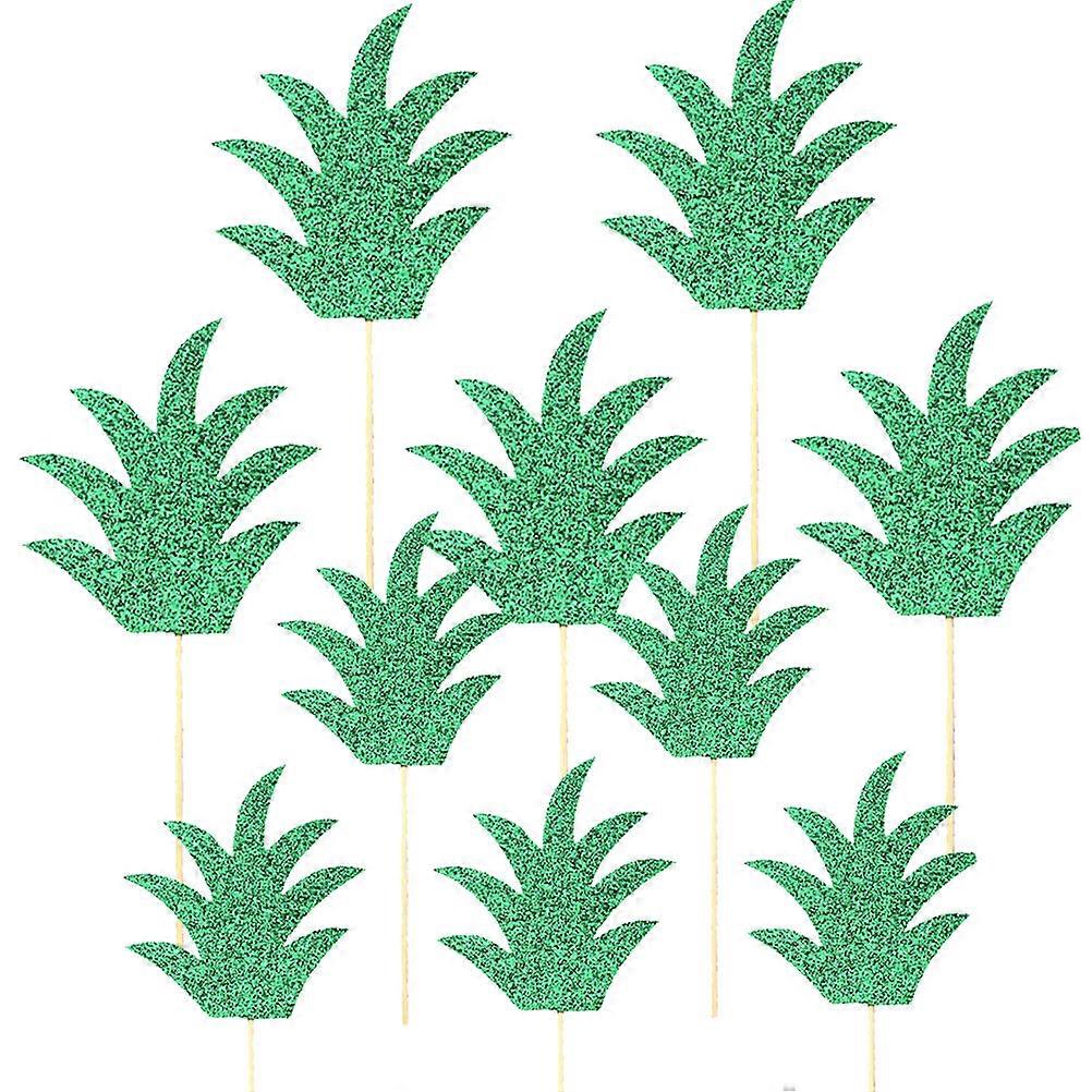 30pcs Green Pineapple Leaf Cake Toppers Paper Cake Picks Cupcake Insert Decor Party Supplies for Birthday Festival